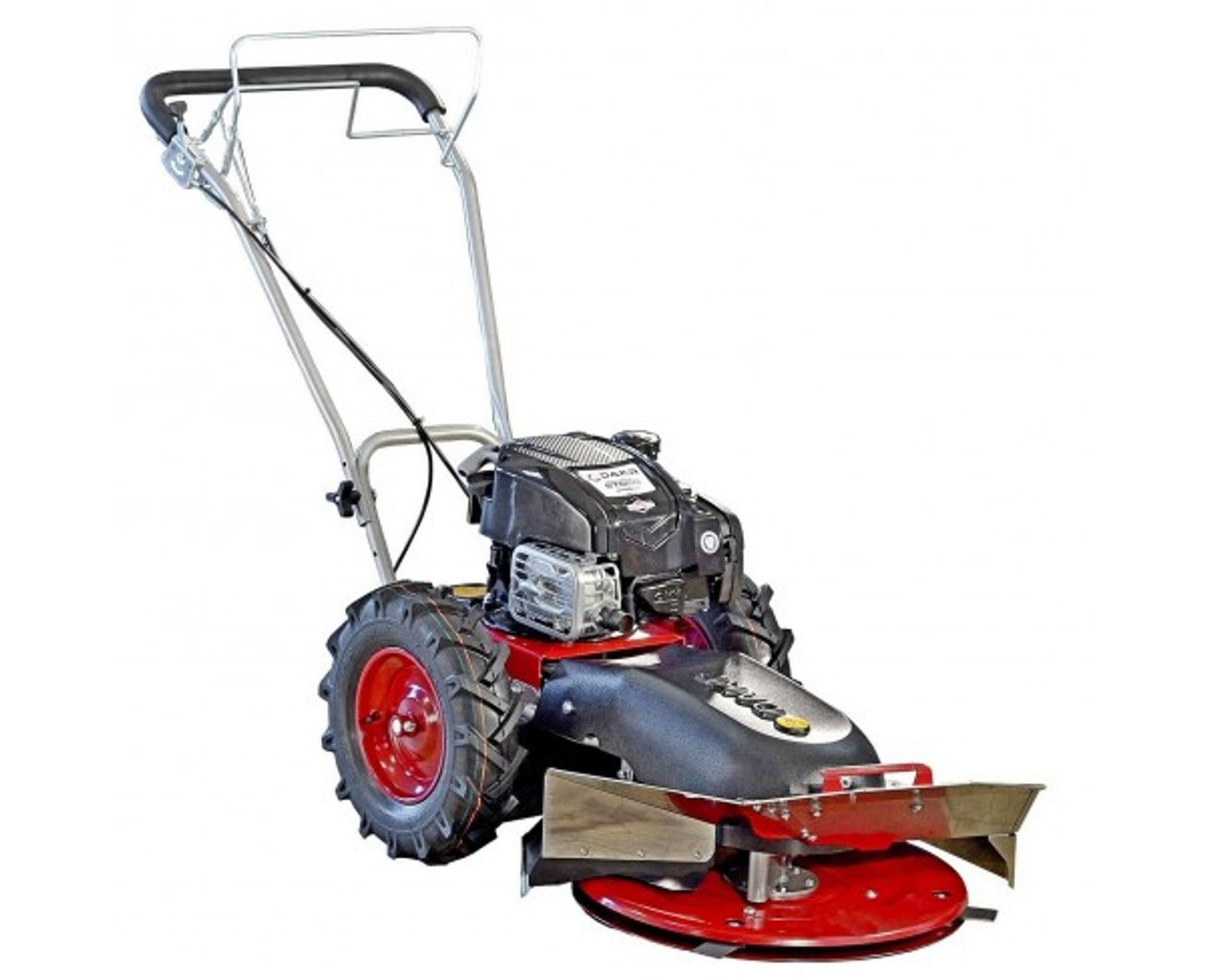 Stavebnicová bubnová sekačka s pojezdem, celoplošně krytý žací talíř o záběru 60 cm, max. výkon motoru Briggs&Stratton 5,5 HP, dvě rychlosti vpřed.