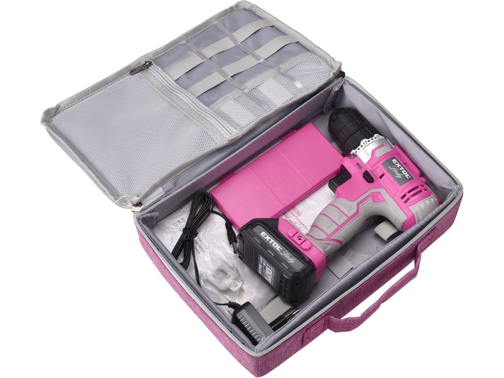 Buďte první, kdo ohodnotí "EXTOL LADY vrtací šroubovák aku, růžový, 12V Li-ion, 1300mAh, v tašce, 402401"