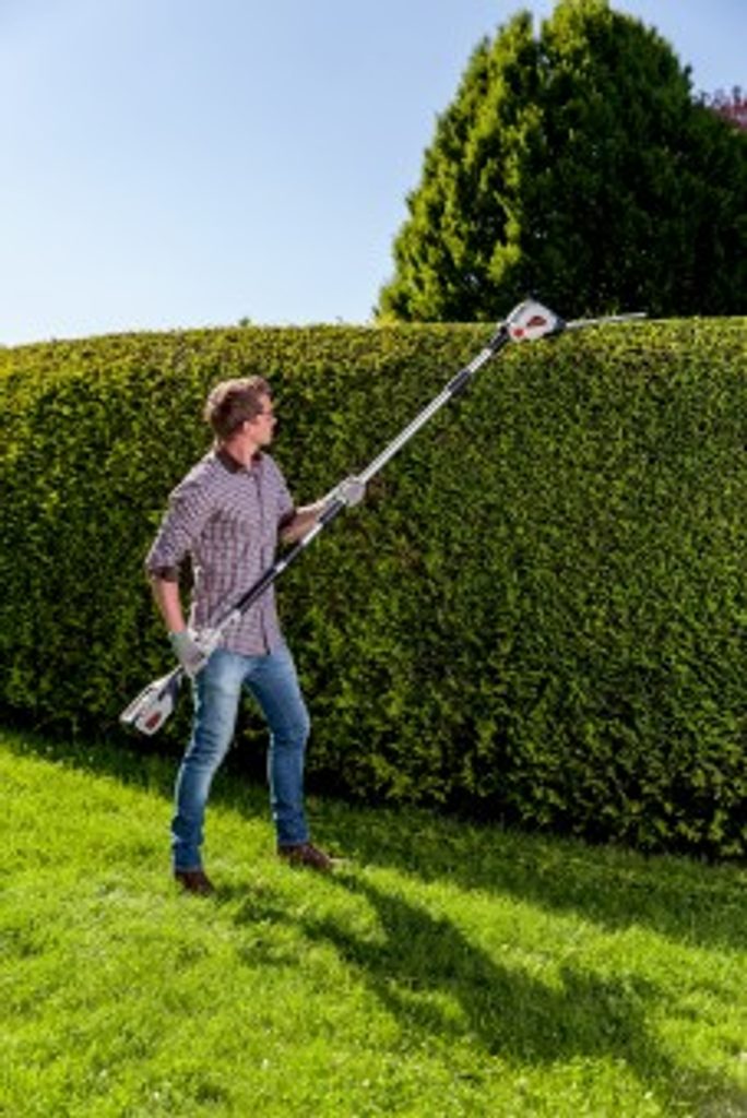 Máte-li základní nářadí AL-KO 36 V MT 40, můžete základní přístroj snadno přeměnit na akumulátorové nůžky na živý plot s nástavcem AL-KO 36 V HTA 4045. Díky systému rychlé výměny bez použití nářadí je nástavec namontován během okamžiku - a stříhání živého plotu může začít. Protiběžné bezpečnostní nože zaručují nejvyšší možnou ochranu proti nehodám. S tímto nástavcem s nízkými vibracemi je přesné řezání snadné a bez námahy. Díky bateriovému provozu základní jednotky máte absolutní volnost pohybu při vedení zařízení, aniž byste se museli starat o otravné kabely. Nosný popruh vám navíc pomůže vést nůžky na živý plot, aniž byste se unavili. Je tichý, bez emisí a nenáročný na údržbu. Po demontáži lze základní jednotku MT 40 i nástavec HTA 4045 přepravovat a skladovat velmi prostorově úsporným způsobem.