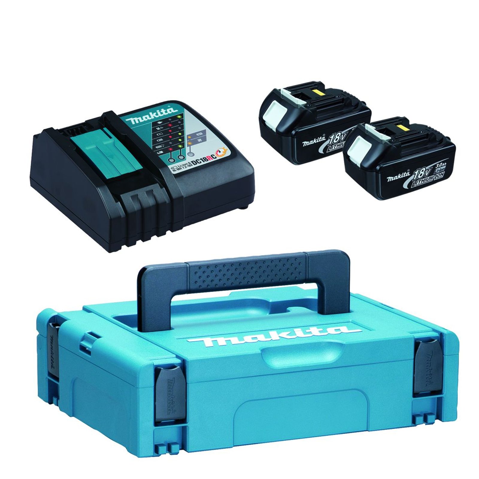 Buďte první, kdo ohodnotí "Makita 197952-5 - sada Li-ion LXT 18V 2xBL1830B+DC18RC+Makpac=old196693-0"