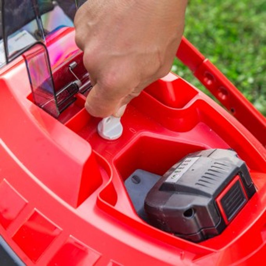 Bezpečný start díky startovacímu klíčku. Li-Ion baterie s napětím 40V zajišťuje efektivní práci na travních plochách až do 400 m². Díky inovativním bateriovým článkům je tato baterie mimořádně výkonná, s dlouhou životností a bez paměťového efektu. Integrované LED kontrolky ukazují stav nabití baterie. Délka nabíjecího cyklu je přibližně 1,5 hodiny. Výšku sečení lze nastavit centrálně v 7 krocích od 30 mm do 75 mm pro dokonalé přizpůsobení vašim požadavkům. Sběrný koš o velikosti 65 l a aerodynamické proudění vzduchu zaručuje efektivní sečení a skvělý sběr posekané trávy, která je díky tomu dopravována až do zadní části koše. Ergonomicky tvarovaná rukojeť a kola osazena kuličkovými ložisky zajišťují komfortní práci.