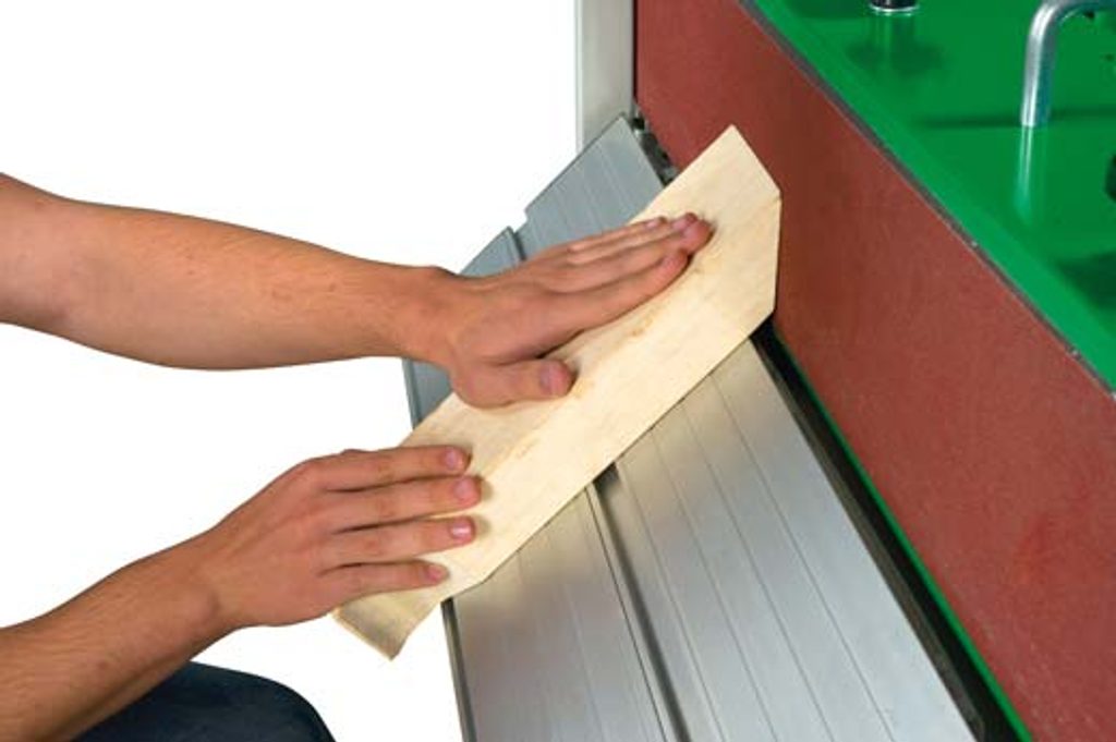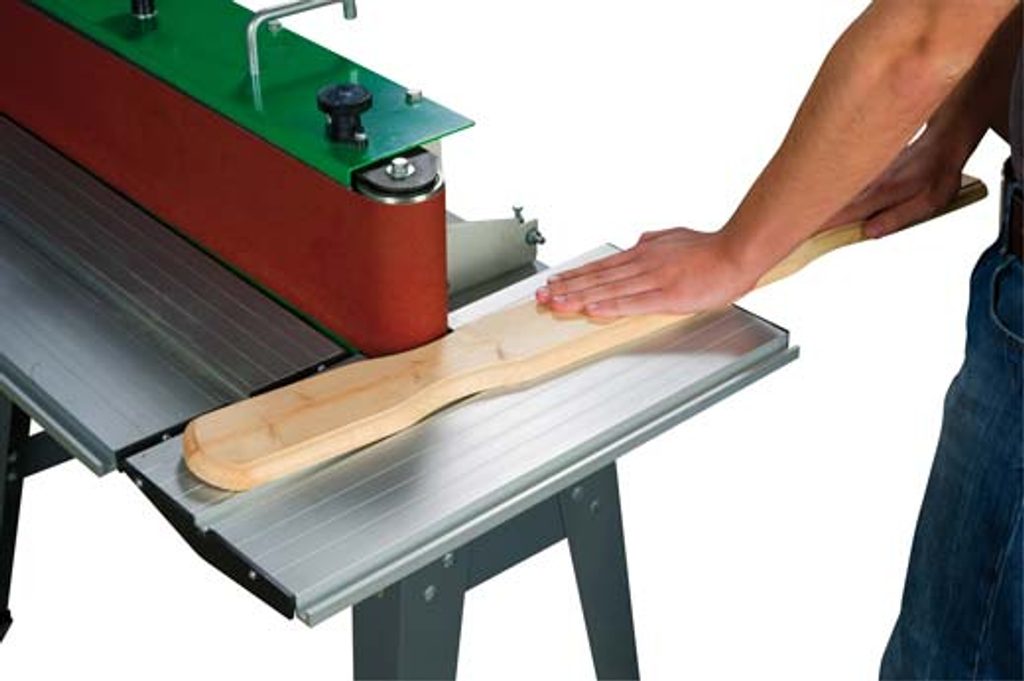 Pásová bruska s plynule sklopným agregátem.