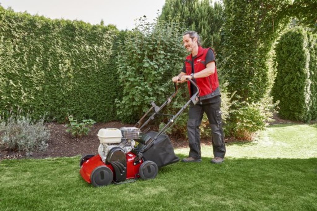 To znamená spolehnout se na osvědčenou kvalitu solo-by-AL-KO s vysokou flexibilitou bez kabelů. Benzínový vertikutátor solo® od AL-KO 518 – robustní, nezávislý pomocník pro vaši zahradu Benzínový vertikutátor solo® od AL-KO 518 je vaším věrným, nezávislým partnerem pro vertikutaci na každé zahradě a v každém terénu – bez ohledu na zásuvky, délky kabelů nebo výdrž baterie. S vertikutátorem solo® od AL-KO 518 je práce snadná a můžete dosáhnout velmi rychlého postupu práce. Se svým výkonným benzínovým motorem a 15 obzvláště stabilními dvojitými ocelovými noži spolehlivě odstraňuje plevel a mech z trávníku. Trávník tak opět získá dostatek „vzduchu k dýchání“ a je otevřený absorbovat přírodní živiny a hnojiva. Díky pracovní šířce 36 cm se postupuje rychle a v krátké době zpracujete i větší plochy. Díky 2osému vedení je výkonné zařízení ovladatelné a snadno ovladatelné a zůstává bezpečně na trati. Řídítka s ergonomicky integrovanými ovládacími prvky vám umožní pohodlně ovládat a přepínat zařízení, aniž byste se museli natahovat, takže můžete pracovat bez únavy i při delším používání. Řídítka lze sklopit pro úsporu místa pro přepravu a skladování. Technické údaje benzínového vertikutátoru solo® od AL-KO 518 Benzínový vertikutátor solo® by AL-KO 518, poháněný 3,6 kW 163 ccm zážehovým motorem Honda, nabízí tak vysoký výkon, že si s jistotou poradíte i s většími trávníky. Díky 4-taktnímu spalovacímu motoru lze zařízení používat nezávisle na elektrické síti a bez ohledu na délku kabelů i ve velkých zahradách nebo odlehlých oblastech. Díky pracovní šířce 36 cm a vysoce robustní násadě nože s 15 dvojitými ocelovými čepelemi s dlouhou životností je postup práce velmi efektivní. Mechanismus čepele lze snadno spustit z rukojeti a kolečka s kuličkovými ložisky zajišťují hladší chod. Pracovní hloubku lze plynule nastavit mezi 0 a 25 mm – samozřejmě centrálně. Charakteristickým znakem vysoké kvality provedení modelů solo® by AL-KO je robustní pouzdro vyrobené z prémiové oceli, které zaručuje dlouhou životnost a udržuje zařízení velmi nenáročné na údržbu i při intenzivním nepřetržitém používání.
