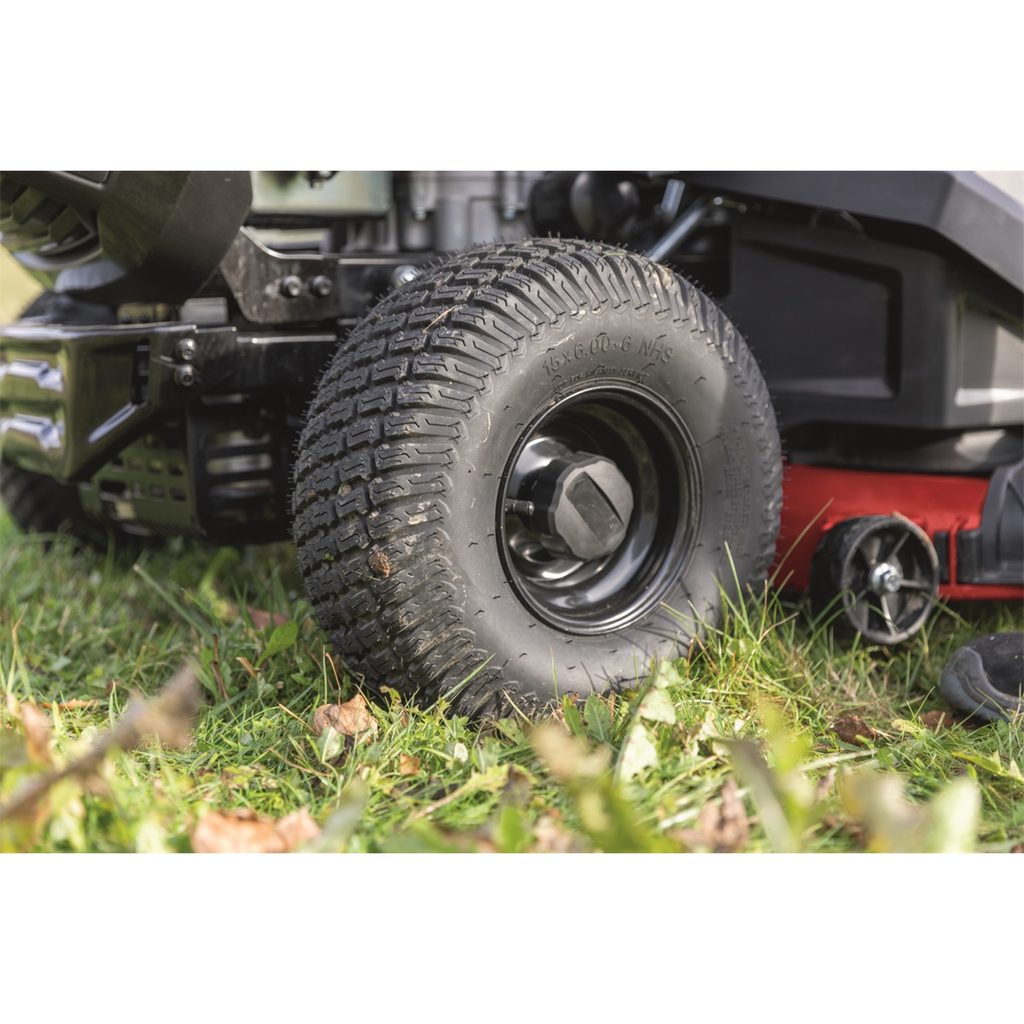 Traktor je navržen tak, aby byl komfortní i při delší práci. Velká kola (vpředu 15" a vzadu 18") zajišťují stabilní jízdu, lepší průchod terénem a vyšší pohodlí při překonávání nerovností. Praktickým prvkem jsou také LED světlomety, které zlepšují viditelnost při práci za šera nebo v horších světelných podmínkách.