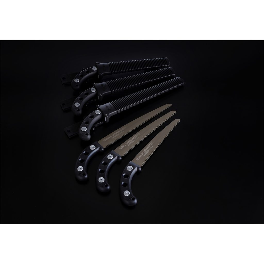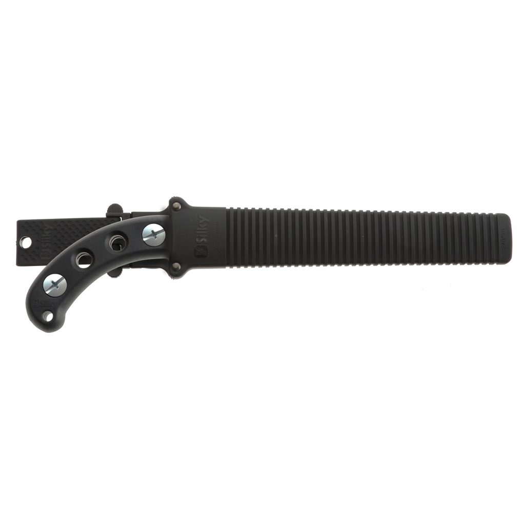 Až na některé výjimky, kdy je rukojeť pil Silky vyrobena z ocele nebo hliníku, používá Silky na materiál rukojetí speciální pryž – GOM. Ta má několik zásadních výhod. Pocitově na dotyk je tento povrch velmi příjemný, i v chladném počasí příjemně hřeje a díky poddajnému povrchu Vás rukojeť netlačí ani po celodenní práci. Navíc neklouže ani ve zpocených rukou, což má zase příznivý vliv na vedení celé pily a tím i bezpečnost. Rukojeť také účinně pohlcuje vibrace, které při řezání vznikají. Důležitou vlastností pil Silky je to, že tělo pily prochází jako jedna část skrz celou rukojeť až na konec. Nikdy tedy nehrozí zlomení čepele za hranou začátku rukojeti, jako u některých jiných pil a rovněž při řezání tvoří celá pila tuhý celek, který se v rukojeti neprohýbá. Kontrola pily při řezání je tak dokonalá. Rozebrání rukojeti při výměně pilového listu je řešeno rovněž velmi jednoduše a každý uživatel tuto operaci zvládne hravě sám.