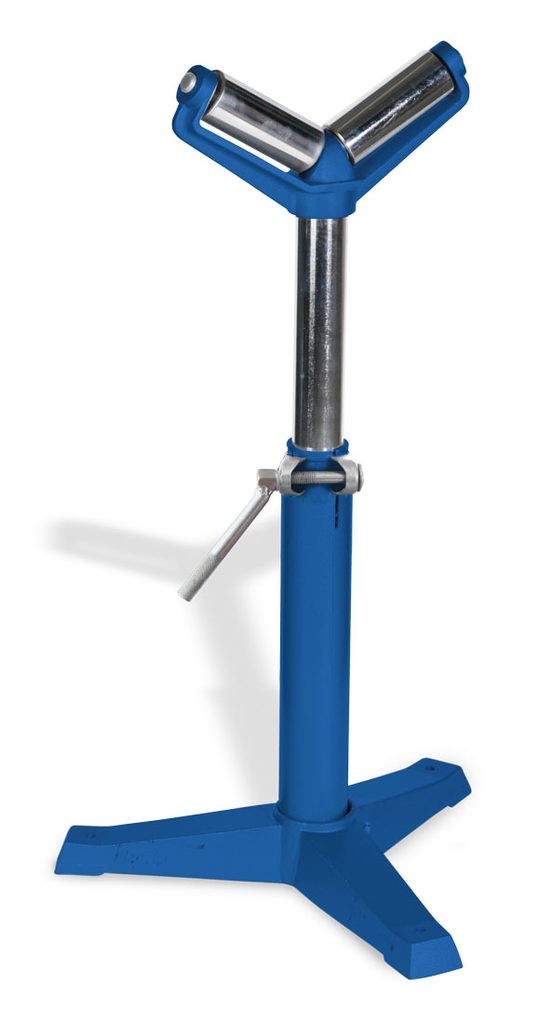 Pro podávání těžkých a rozměrných obrobků. Uspořádání podpěrných válečků do V zabraňuje sesunutí podávaného materiálu.