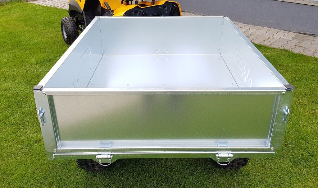 Buďte první, kdo ohodnotí "Vozík TR 220S – POZINK, prachotěsné náboje kol, profi lovaný nosník korby tl. 3 mm - Vozík VARES pro zahradní traktory"