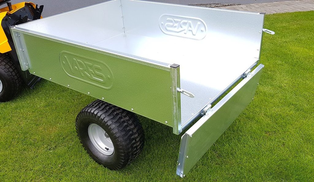 Absolutní novinka na evropském trhu! Dokonalá ochrana povrchu žárovým zinkováním na několik desetiletí! Minimální hmotnost zinkového povlaku 275g/m2 s kresbou velmi jemných zinkových květů. Profesionální prachotěsné náboje kol se zesílenou hřídelí 22mm. Zesílená konstrukce ocelové korby snýtovaná pevnostními nýty, tloušťka materiálu korby 1,5mm, tloušťka profilovaného nosníku 3mm. Zcela nový systém profesionálních pantů na zadních dvířkách korby. Dvojitě zalisované, zaoblené a dokonale hladké okraje korby pro snadnou a bezpečnou manipulaci. Kompatibilní s nástavbami VARES. Vozíky jsou dodávány se sestavenou nápravou, jednoduchá a rychlá montáž kol na čtyři šrouby. Dezén pneumatik je velmi šetrný k trávníku.